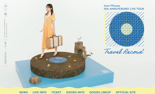 東京都出身の女性歌手/声優、水瀬いのり(みなせ いのり)さんのツアー「Inori Minase 10th ANNIVERSARY LIVE TOUR Travel Record」の特設サイトのWEB...